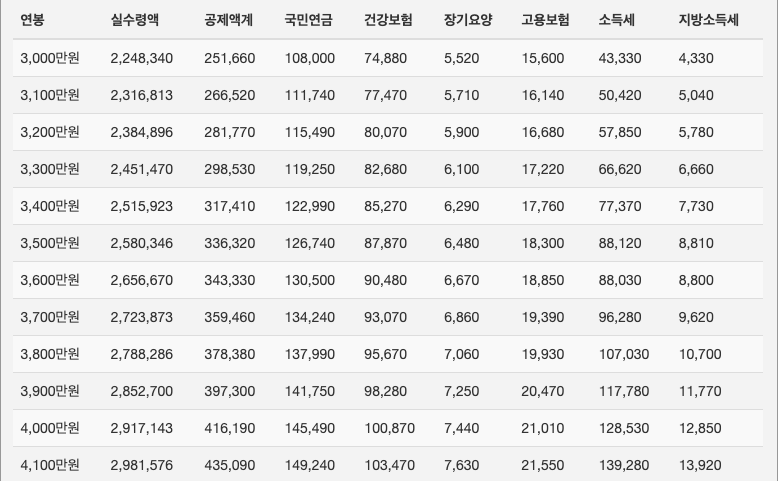 연봉 4100만원의 세후 소득은 월 2,981,576원...
