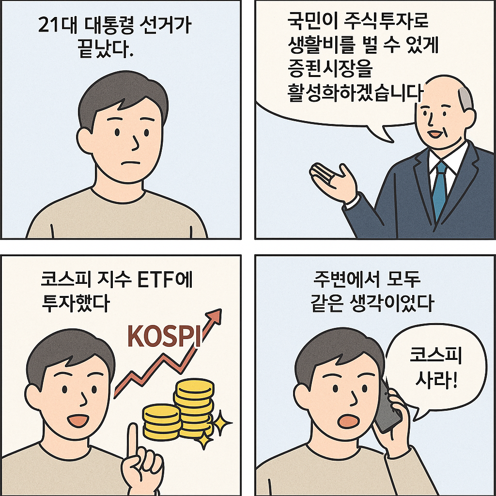 대통령이 대놓고 주식 지수를 올리겠다는데... 여기에 투자 안하면 바보 아닐까? 라는 생각이 들었다.
